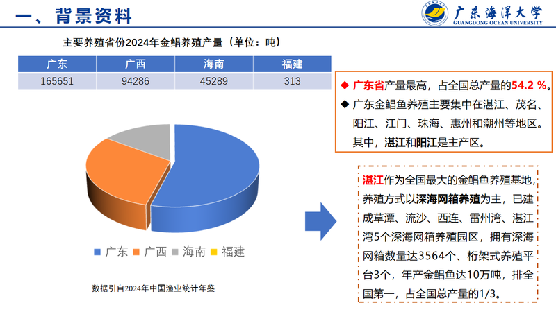 本次培訓(xùn)授課內(nèi)容如下: 近年來,我國海水養(yǎng)殖產(chǎn)業(yè)迎來 “明星品種”—— 金鯧魚(學(xué)名卵形鯧鲹)。數(shù)據(jù)顯示,2024 年全國金鯧養(yǎng)殖產(chǎn)量突破 30 萬噸,同比增長 4.55%,自 2023 年起穩(wěn)居海水養(yǎng)殖魚類產(chǎn)量榜首,廣東、廣西、海南、福建四大主產(chǎn)區(qū)撐起產(chǎn)業(yè)一片天,其中廣東以 16.5 萬噸產(chǎn)量占全國 54.2%,湛江更是憑借 10 萬噸年產(chǎn)量成為 “中國金鯧魚之都”。